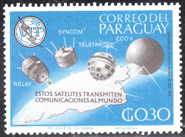 Aus einer Serie "100 Jahre Internationale Fernmeldeunion (ITU)" aus Paraguay stammt diese Marke (MiNr 1474), die auch einen Nachrichtensatelliten Relay zeigt.