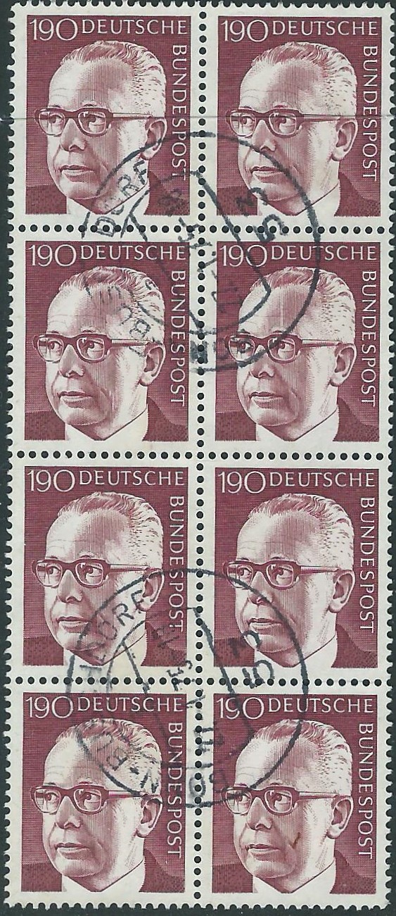 Zum einen eine grosse Einheit der Wertstufe 2 DM. Es handelt sich um einen gestempelten 15-er-Block, der immerhin 30 DM Frankaturwert hatte. Vermutlich klebte er auf einer Paketkarte, da kamen ja höhere Portostufen durchaus mal vor. Jedenfalls hat er jetzt den Weg in mein Album angetreten.