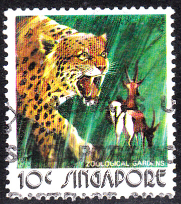 1973 ist in Singapur eine Markenserie zum Zoologischen Garten in Singapur erschienen. Hier kann ich die Marke zu 5 Cent aus dieser Serie (MiNr 205) zeigen. Zu sehen sind auf dieser Marke ein Tiger und zwei Orang Utans.