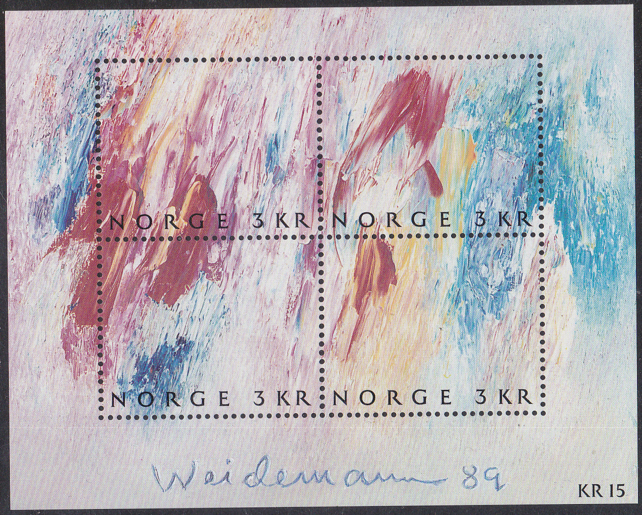 Zum Tag der Briefmarke 1989 erschien am 6. Oktober 1989 in Norwegen dieser Block (MiNr Block 11) mit der Abbildung des Gemäldes "Natureindrücke" von Jakob Weidemann.