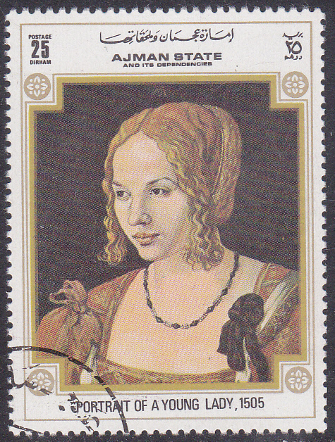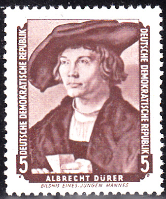 In der Markenserie "Von der Sowjetunion zurückgeführte Gemälde der Dresdner Gemäldegalerie" erschien eine Marke zu 5Pf (MiNr 504), die das Gemälde "Bildnis eines jungen Mannes" von Albrecht Dürer zeigt.