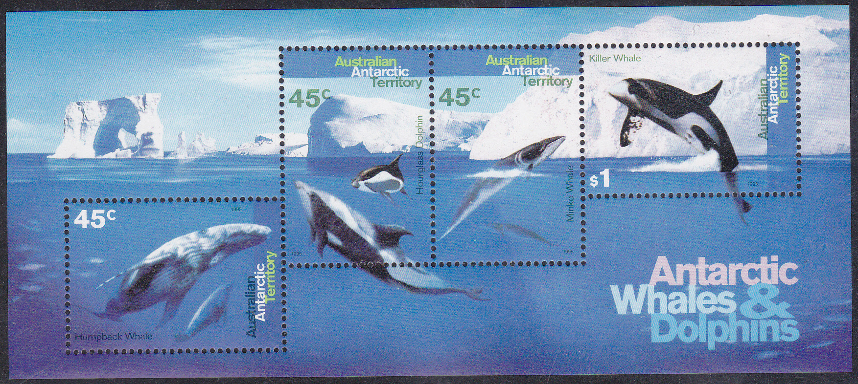Die vier Marken der Serie "Wale und Delphine" sind zusammen auch in einem Block (MiNr Block 1) erschienen. Hier ein postfrischer Block: