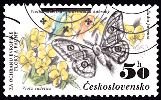 Ein Kleines Nachtpfauenauge (Eudia pavonia) wird auch auf dieser Marke der Tschechoslowakei (MiNr 2711) gezeigt.