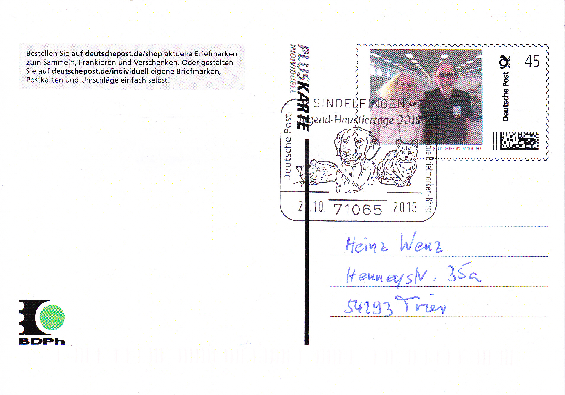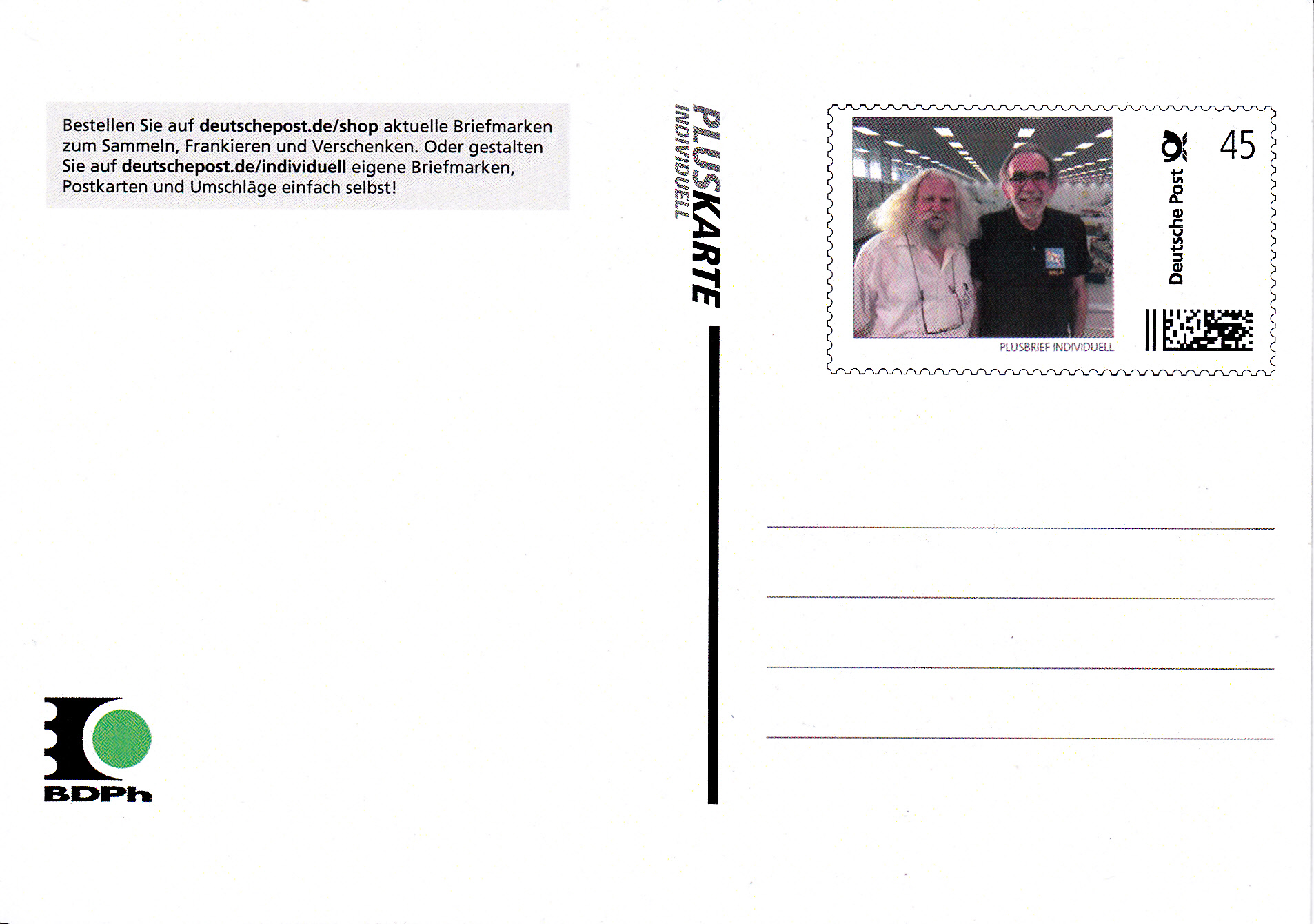 Bei der Briefmarken-Börse Sindelfingen konnten die Besucher eine Pluskarte mit ihrem eigenen Porträt machen lassen. Es handelt sich dabei meist um Einzelstücke, da die Post die erste Karte kostenlos anfertigte und jede weitere Karte für einen Euro abgegeben wurde.