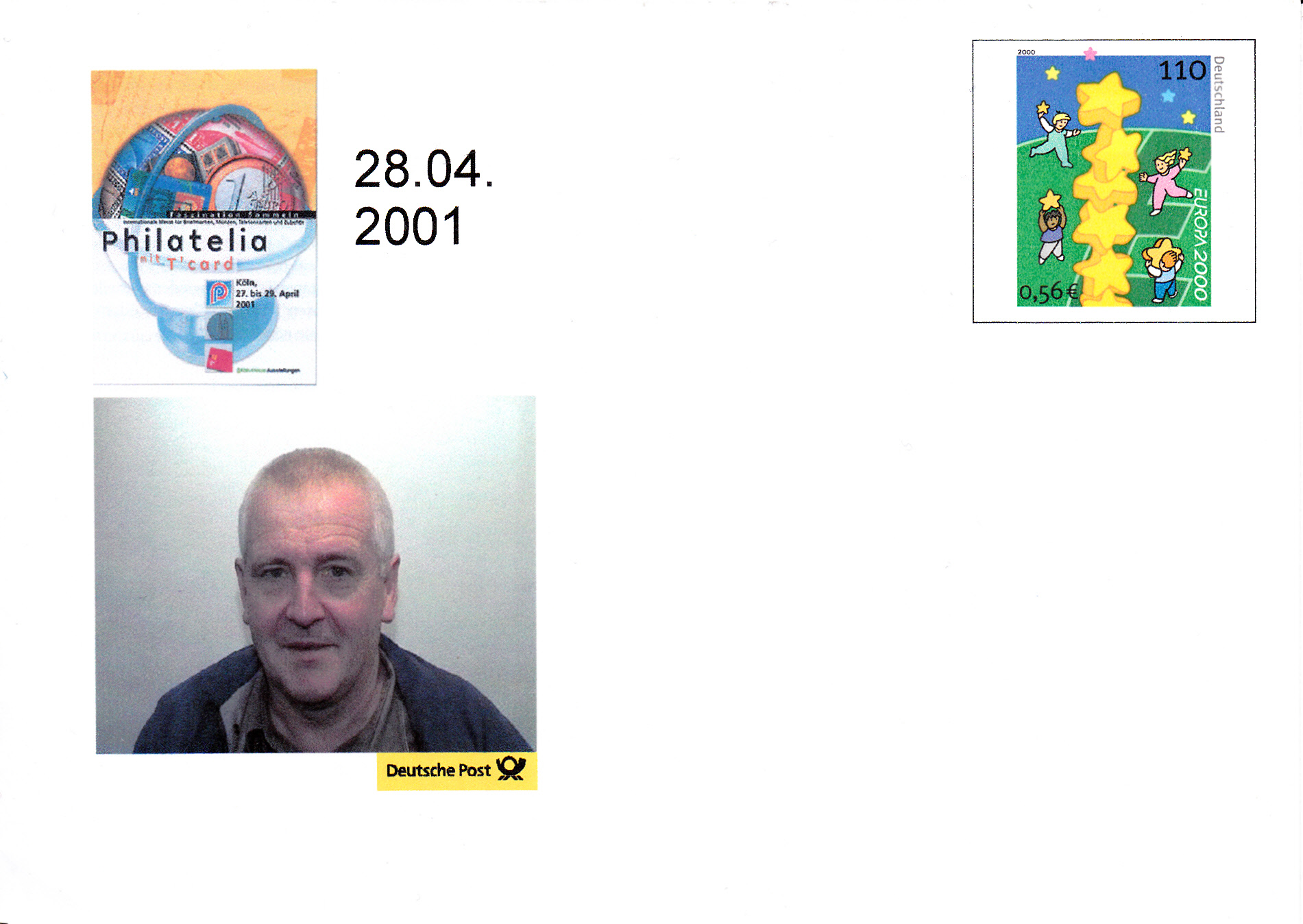 Der Ganzsachenumschlag (MiNr USo 19) war eigentlich ein Plusbrief, der nur den Wertstempel Europa 2000 (MiNr 2113) trug. Offenbar gab es am Stand der Deutschen Post bei der Philatelia in Leipzig die Möglichkeit, diesen Umschlag zu personalisieren. Es wurde das Emblem der Messe und ein am Stand gemachtes Foto (vermutlich des Käufers) über einen Drucker zugedruckt.