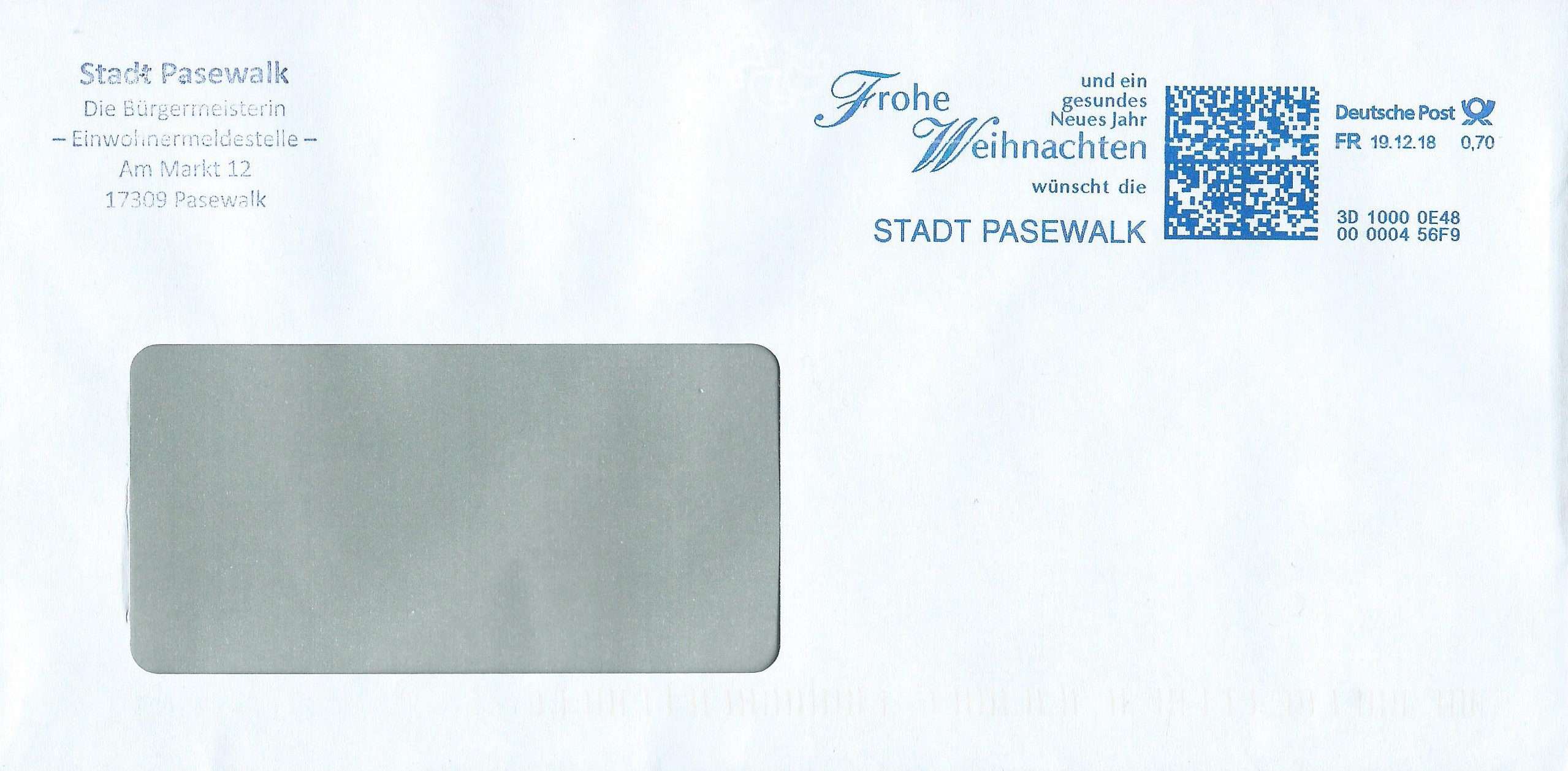 Den Anfang macht die Stadt Pasewalk mit ihren Weihnachtsgrüßen vom 19.12.18: