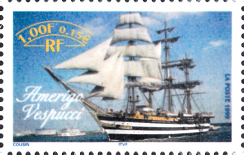 Auf einer Marke aus Frankreich (MiNr 3416) aus der Serie zur Schiffsparade "Armada du Siècle" in Rouen" ist die "Amerigo Vespucci" abgebildet.