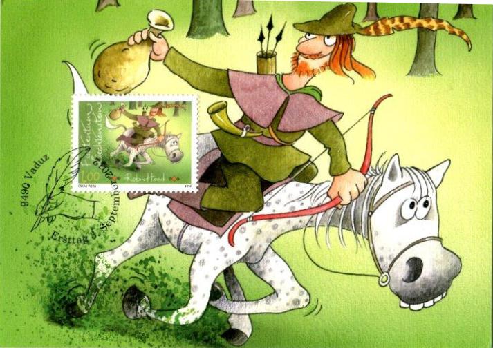 Philatelistisch würdigt Robin Hood diese Maximumkarte aus dem Fürstentum Liechtenstein: