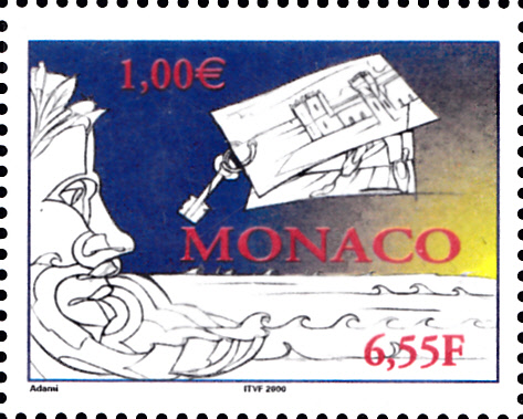 Aus einer Serie "Gemälde im Fürstentum tätiger Künstler zum Thema 'Monaco und das Meer'" stammt diese Marke aus Monaco (MiNr 2490) mit einem Werk von Valerio Adami.