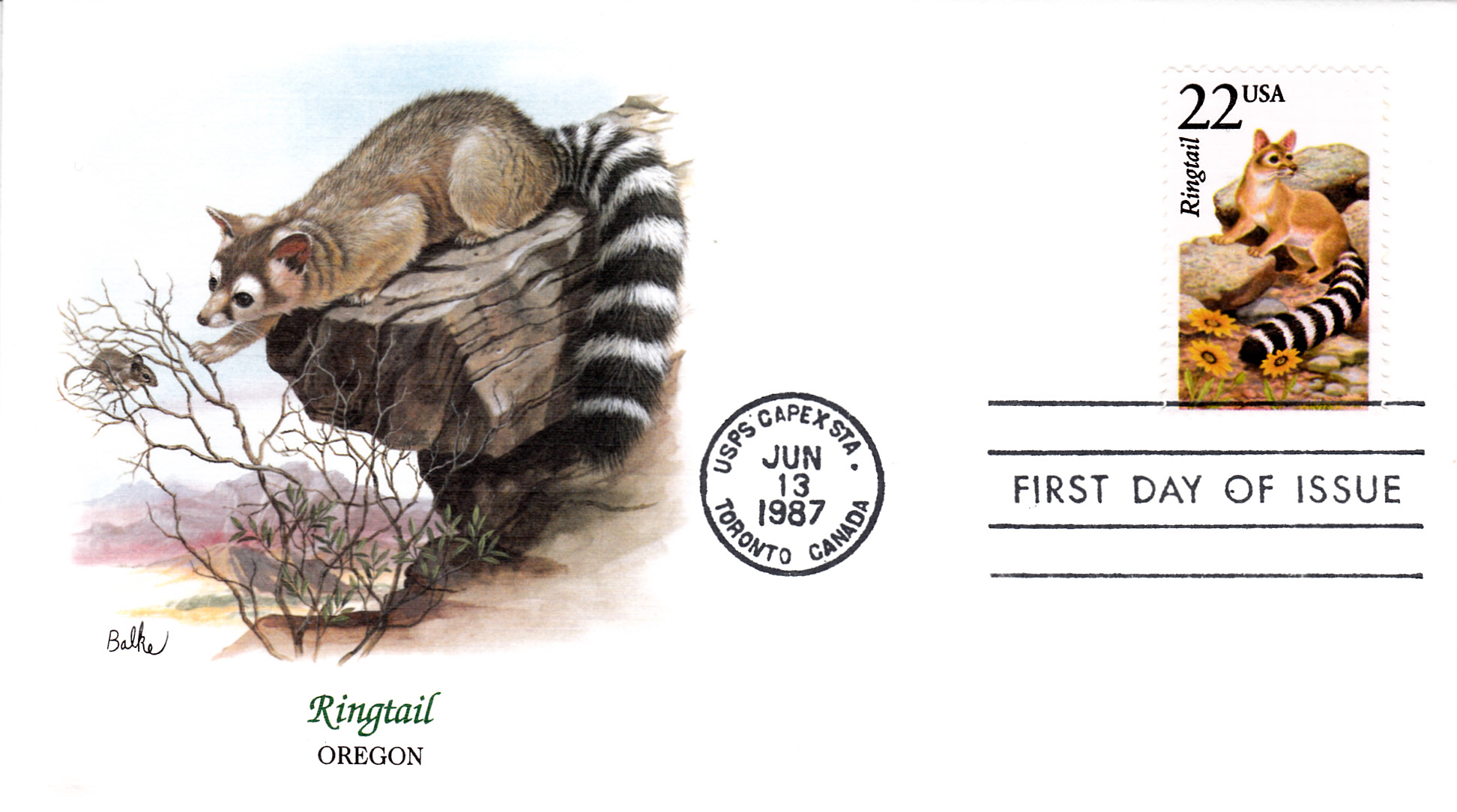 Hier folgt auch noch ein FDC, wie er bei der Weltausstellung Capex 1987 in Toronto von der US-Postverwaltung verkauft wurde.
