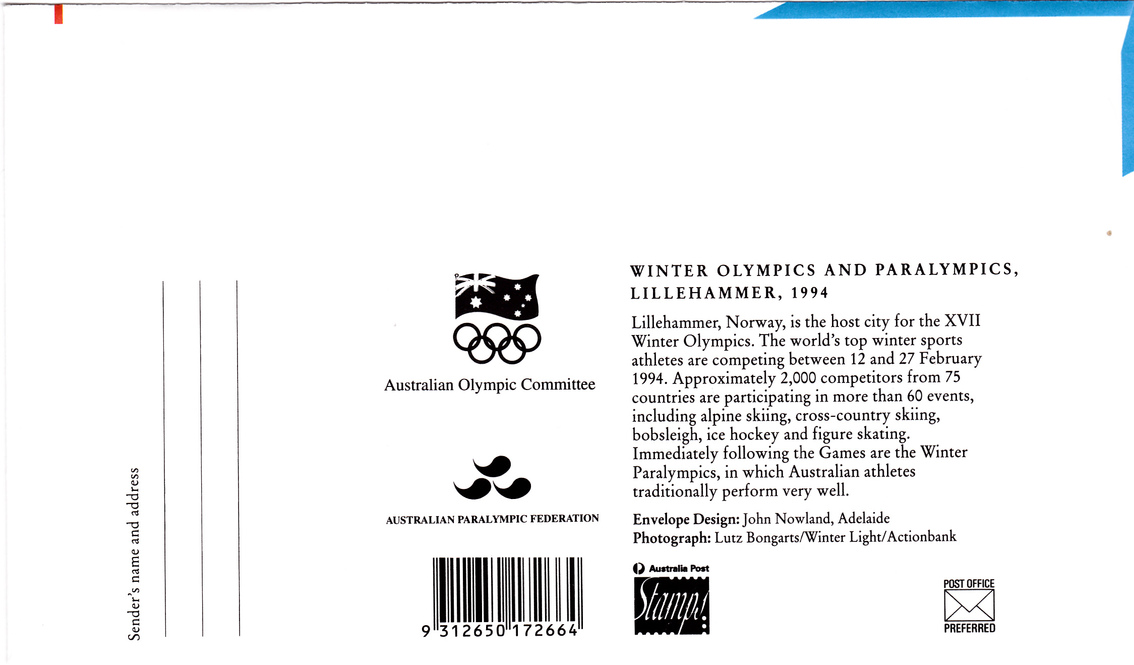 Im Wertstempel dieses Ganzsachenumschlages aus Australien wird ein Slalomläufer gezeigt.