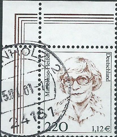 Und abschliessend für heute der Wert zu 300 Pf/1,53 € vom Oberrand aus dem 10-er-Bogen, er wurde am 17.2.02 im Briefzentrum 24 gestempelt.