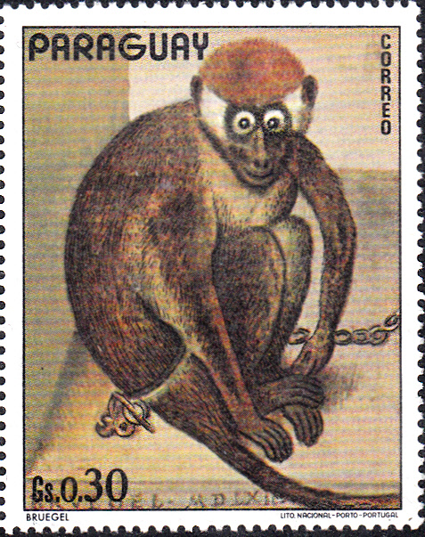 Auf dieser Marke aus Paraguay (MiNr 2370) wird ein Gemälde mit einem Affen von Pieter Bruegel der Ältere gezeigt.