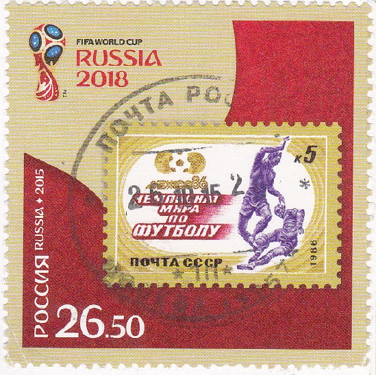 Und auch diese Marke ist derselben Serie zuzuordnen. Man wirbt bereits für die WM 2018 in Russland und die Mitte der Marke wird verziert mit einer alten Fußballbriefmarke aus der Sowjetunion. Diese Serie ist nicht nur spannend für die Fußballfans, sondern auch für die "Briefmarken aus Briefmarken"-Sammler.