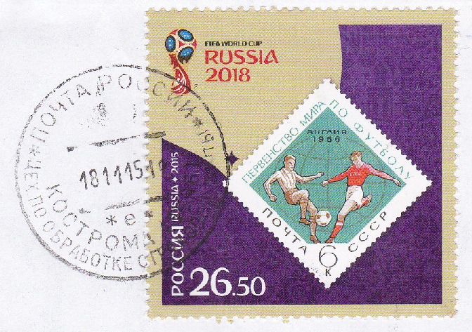 Sehr schön zu sehen ist auch der Ortsstempel aus Kostroma vom 18. November 2015.