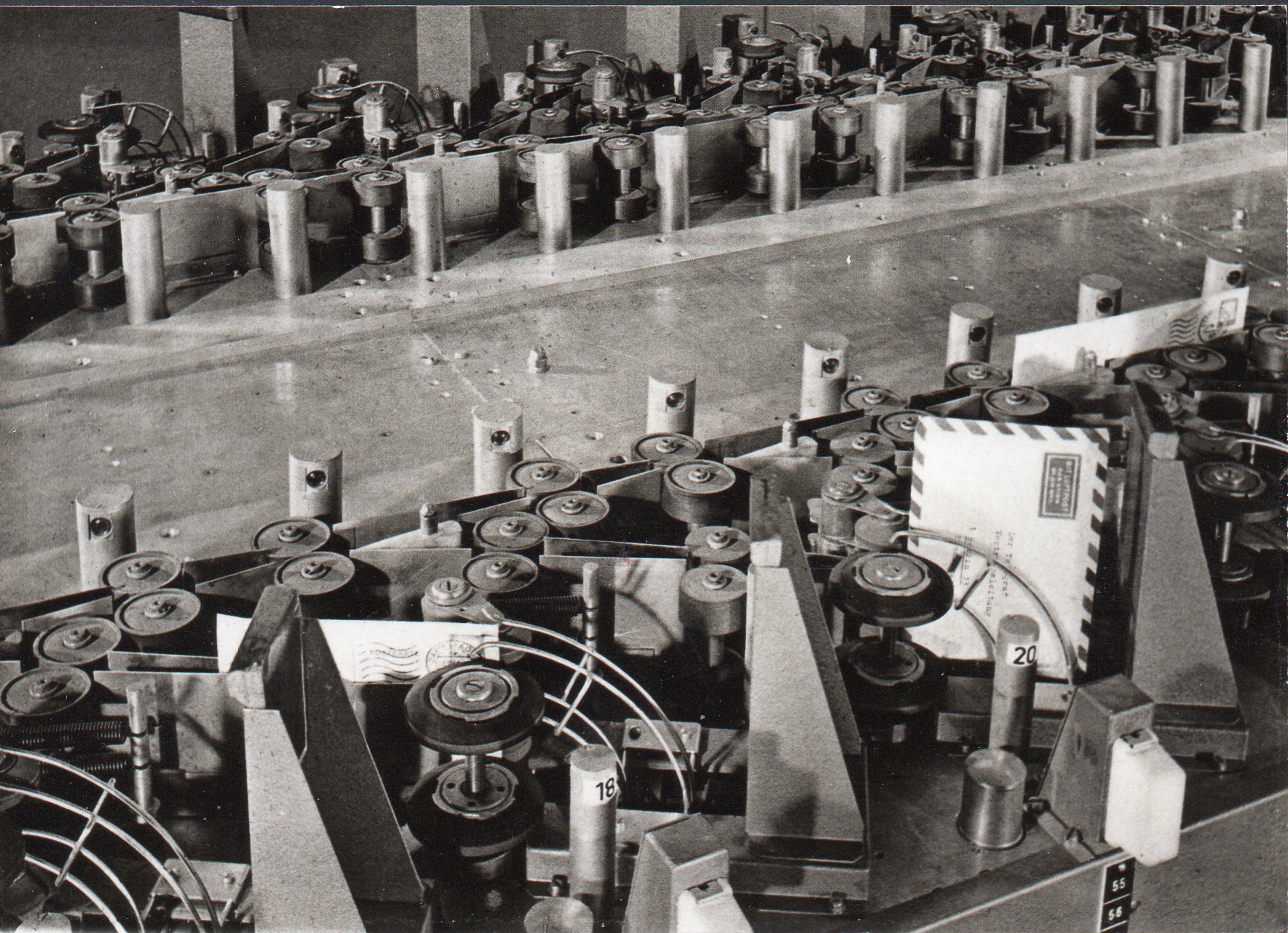 Seit dem Ende der 1950er Jahre experimentierte man im PTZ an Möglichkeiten zur maschinellen Briefaufstellung. Damit sollte die maschinelle Stempelung und Sortierung ermöglicht werden. Am meisten Erfolg versprach die Variante, die Briefmarken mit lumineszierenden Stoffen zu versehen. Nach Labortests wurden auf Antrieb des PTZ auch entsprechende Briefmarken, die von den sonst üblichen Ausgaben nur unter ultraviolettem Licht zu unterscheiden sind, für den Verkauf an die Bevölkerung hergestellt und ab 1. August 1960 bei Postämtern im Raum Darmstadt verkauft. Die Ergebnisse wurden in Zusammenarbeit mit der Industrie so verbessert, dass ab Mitte der 1960er für westdeutsche Briefmarken ausschließlich Briefmarkenpapier mit fluoreszierenden Eigenschaften verwendet wurde.