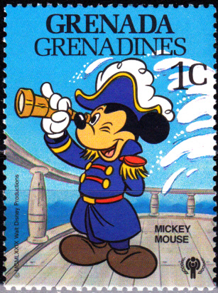 In Grenada/Grenadinen ist im Dezember 1979 eine Serie zum Internationalen Jahr des Kindes mit Walt Disneyfiguren erschienen. Diese Marke (MiNr 358) zeigt Mickey Mouse als Admiral.