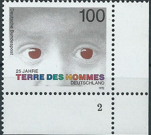 Ein Wert zu 100 Pf, 25 Jahre Terre des Hommes (Mi.Nr. 1585) mit Formnummer 2: