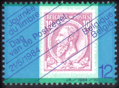 Zum Tag der Briefmarke 1984 ist in Belgien diese Marke (MiNr 2184) erschienen. Sie zeigt die Marke Belgien MiNr 42.