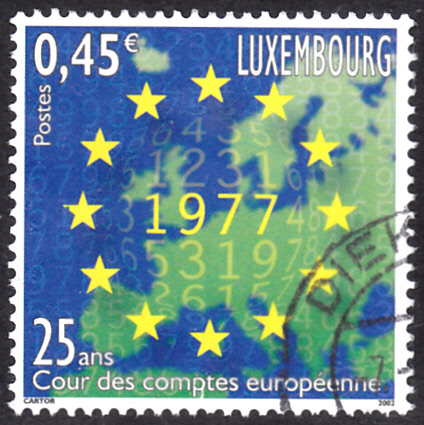 In Luxemburg ist 2002 eine Marke zum Jubiläum "25 Jahre Europäischer Rechnungshof" erschienen. Sie zeigt Sterne um das Gründungsjahr vor einer Europakarte.