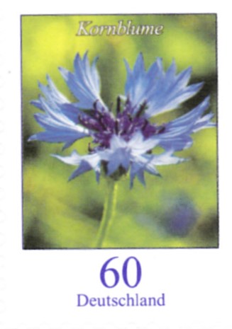 Die Marke zu 60 Cent mit der Kornblume gibt es auch als selbstklebende Marke (MiNr 3481) aus einem Markenset oder Folienblatt (MiNr Folienblatt 88).
