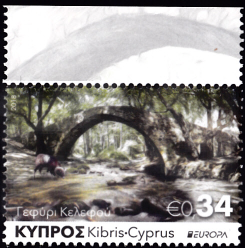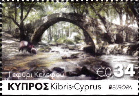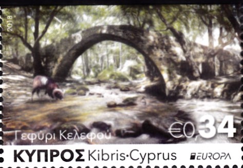 In Zypern erschien die Europamarken 2018 zum Gemeinschaftsthema "Brücken" am 2. Mai 2018. Hier eine vierseitig gezähnte Marke zu 0,34 € (MiNr 1391 A) mit einer Abbildung der Kelefos-Brücke in Paphos mit einem Widder. Die Auflage der Marke betrug 190 000 Stück.
