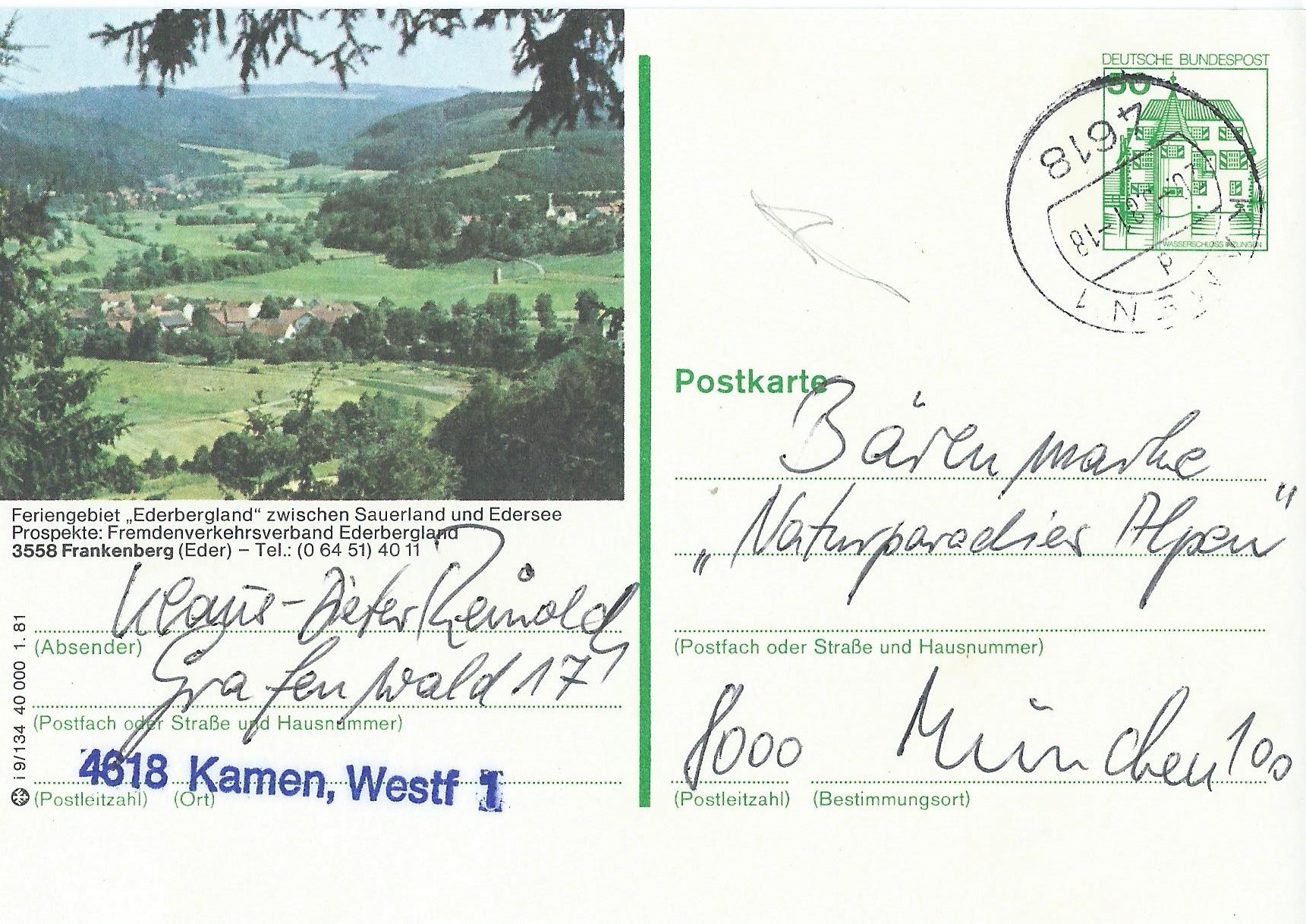 Den Anfang machen einige Postkarten aus dem Jahre 1984, welches an dem Druckvermerk links neben dem Bild zu erkennen ist. Hier nun eine Postkarte mit einer Ansicht von Bocholt, gestempelt wurde die Postkarte am 8.4.84 in Essen.