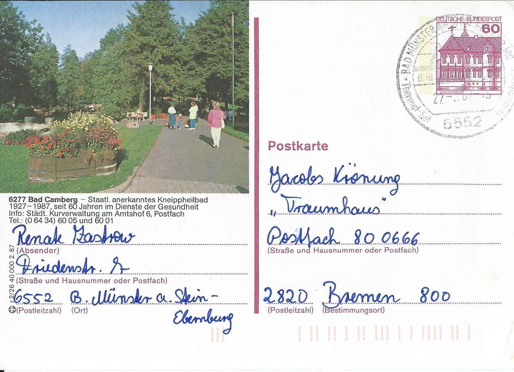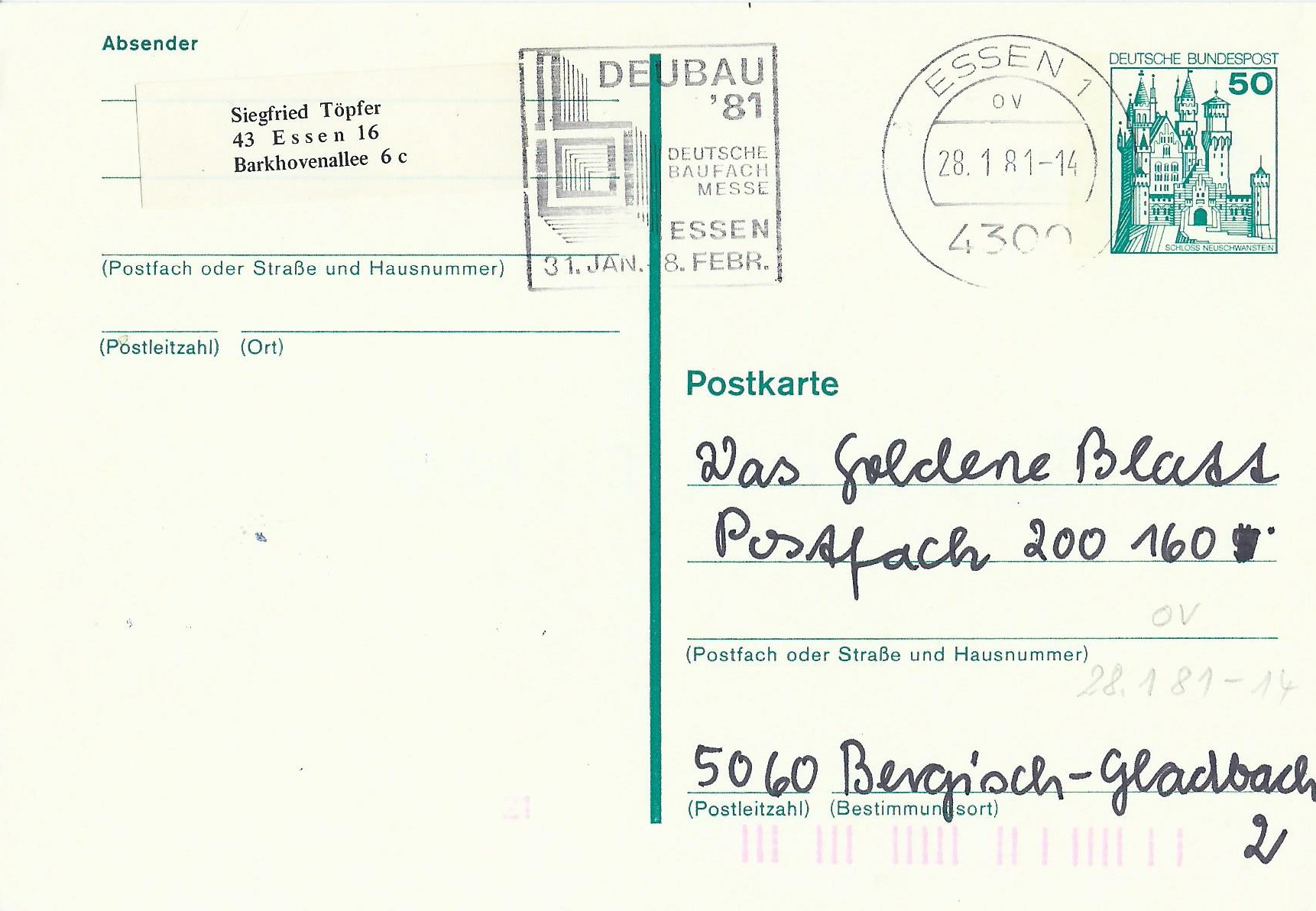 Die zweite Karte wurde in Essen am 5.1.82 gestempelt.
