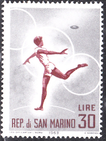 Eine Diskuswerferin ist auf dieser Marke zu 10 Lire (MiNr 788) aus San Marino zu sehen.