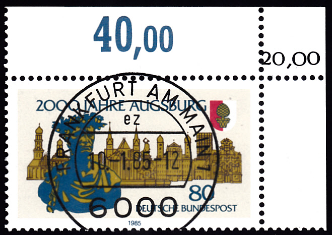 Hier zeige ich ein Eckrandstück der Marke "2000 Jahre Augsburg" mit korrigierten Bogenwertzähler.