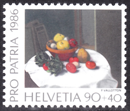 In der Serie "Pro Patria" 1986 zeigt eine Marke aus der Schweiz (MiNr 1320) ein Stillleben von Félix Vallotton.