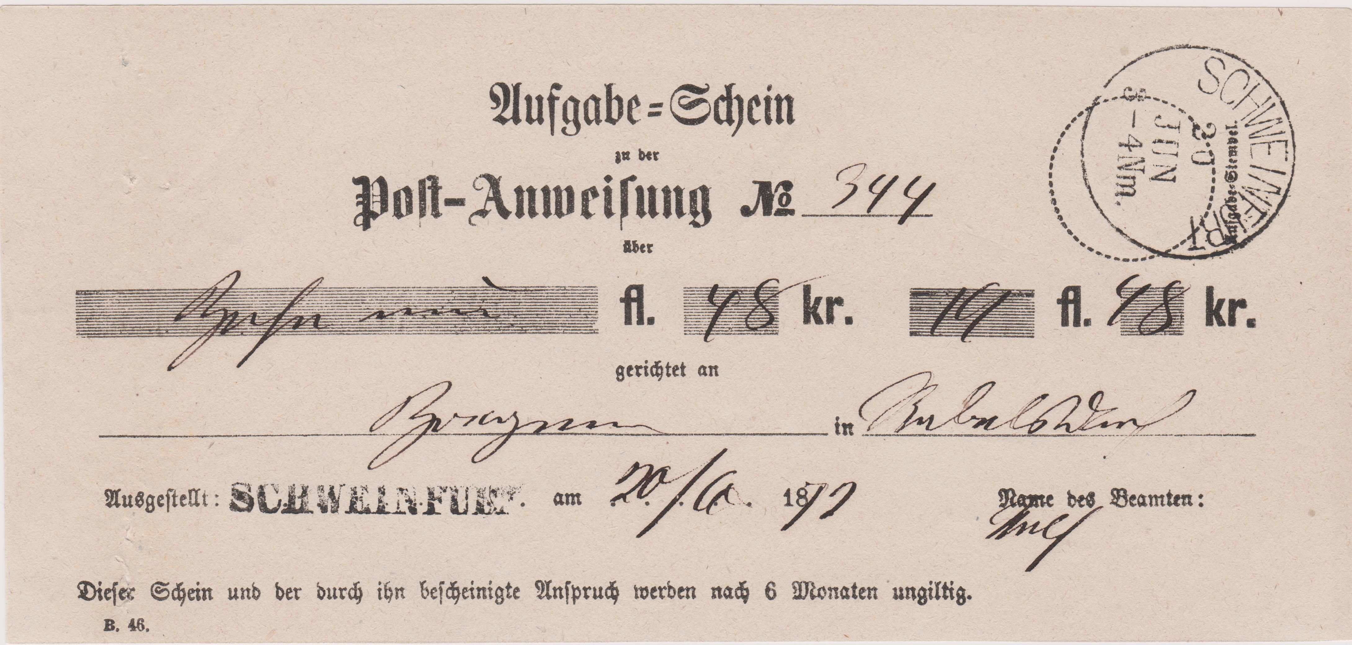 Rückseitig wurde als Ausgabestempel, Büttner Nr. 51, ein Kreisstempel "III 30/4 7 1/4 - 9 1/4 Vm." abgeschlagen: