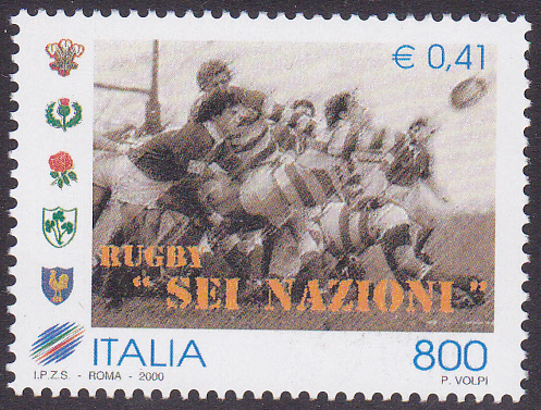Zu einem Rugby-Sechs-Nationen-Turnier in Rom gab es 2000 in Italien eine Marke (MiNr 2672) mit einer Spielszene beim Rugby.