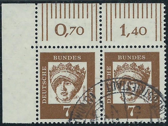 hier ein schönes gestempeltes waagerechtes Paar aus der linken oberen Bogenecke zu 7 Pf mit entsprechenden Reihenwertzählern: