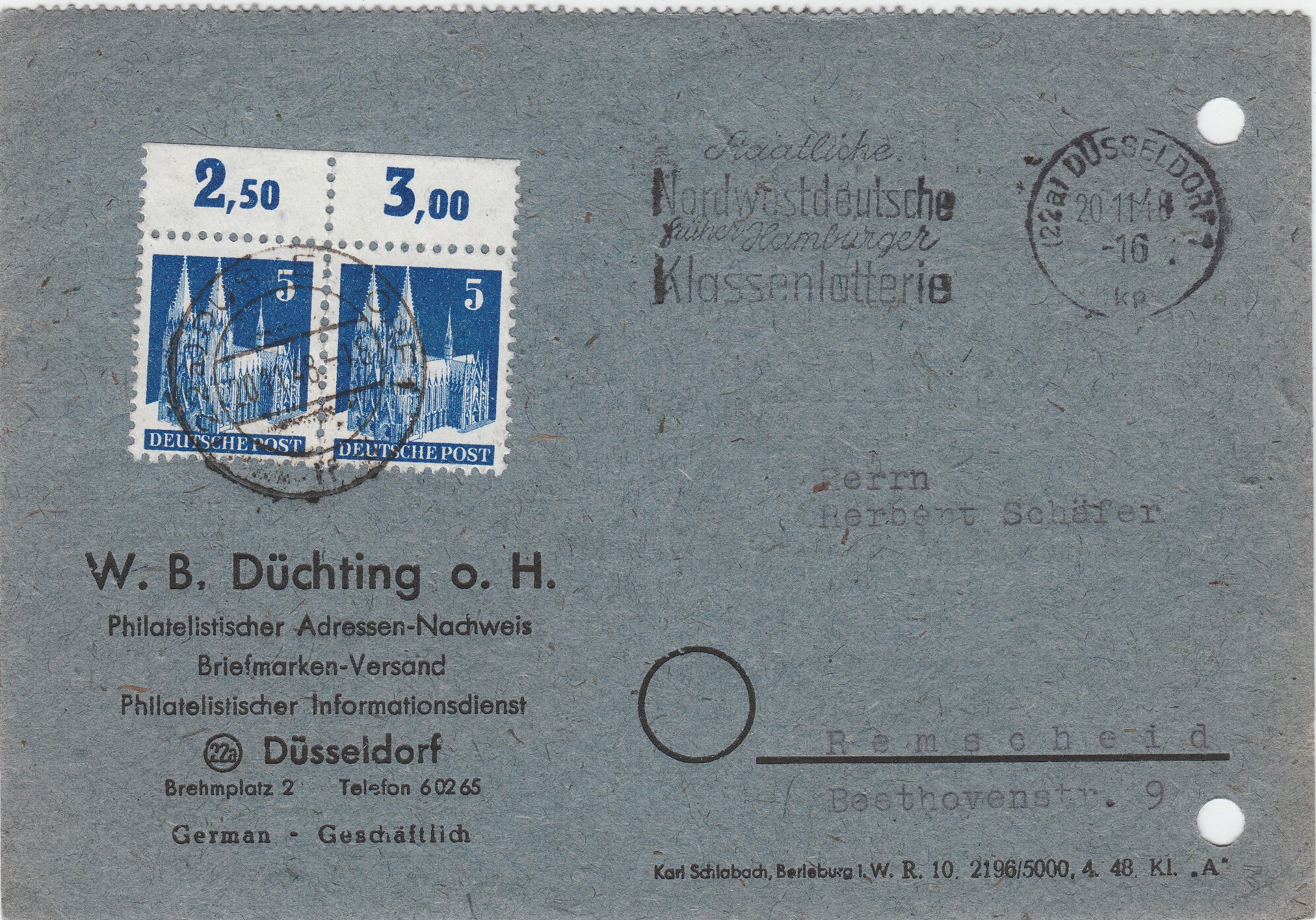 Heute habe ich diesen Brief mit einem Zweierstreifen des Wertes zu 10 Pf, MiNr. 80 I W B, aus einer Grabbelkiste befreit: