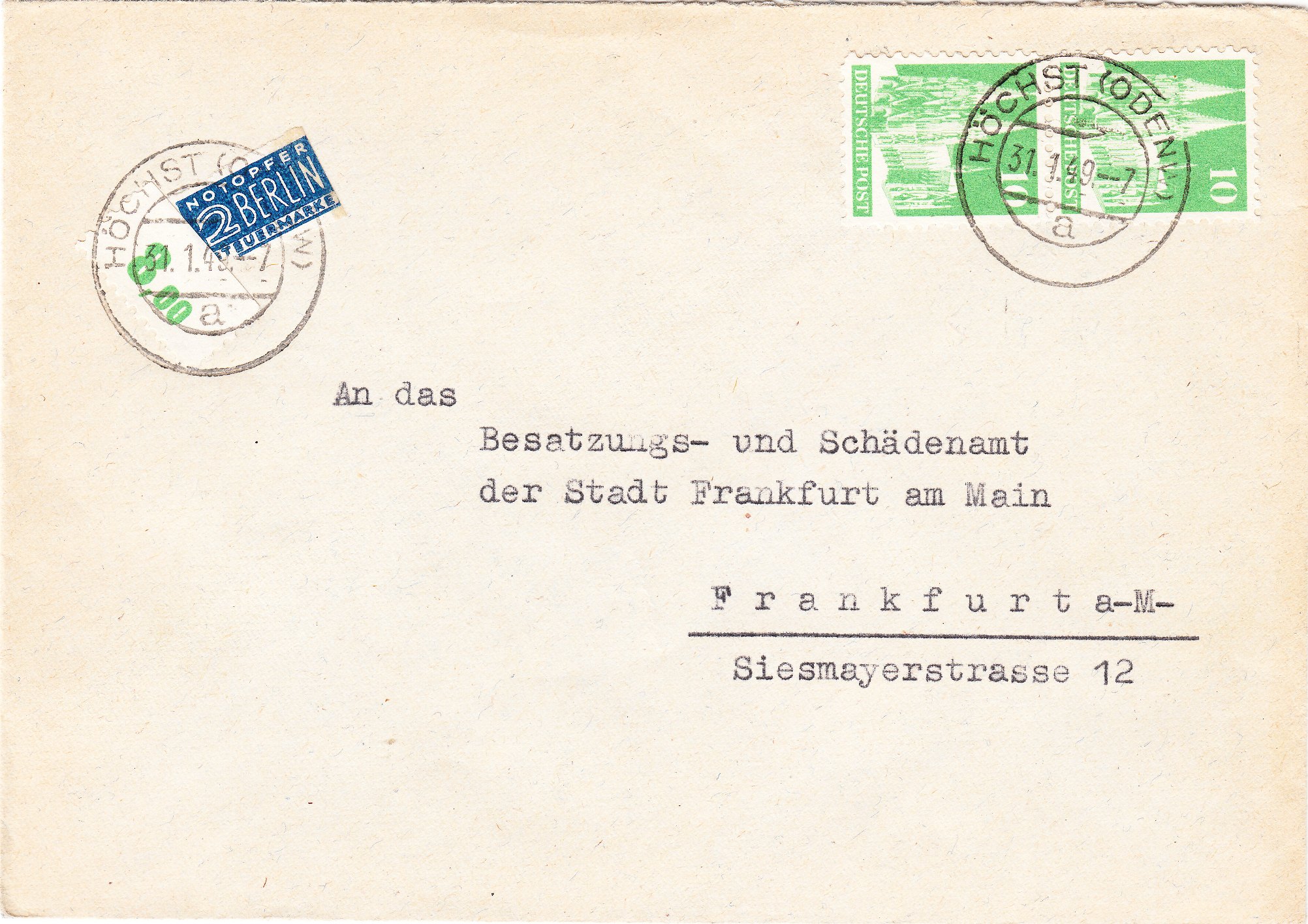 Seltsam nur, dass dieses Exemplar in Höchst ganz normal per Handstempel mit entwertet wurde und dem Postbeamten die Manipulation nicht aufgefallen ist.