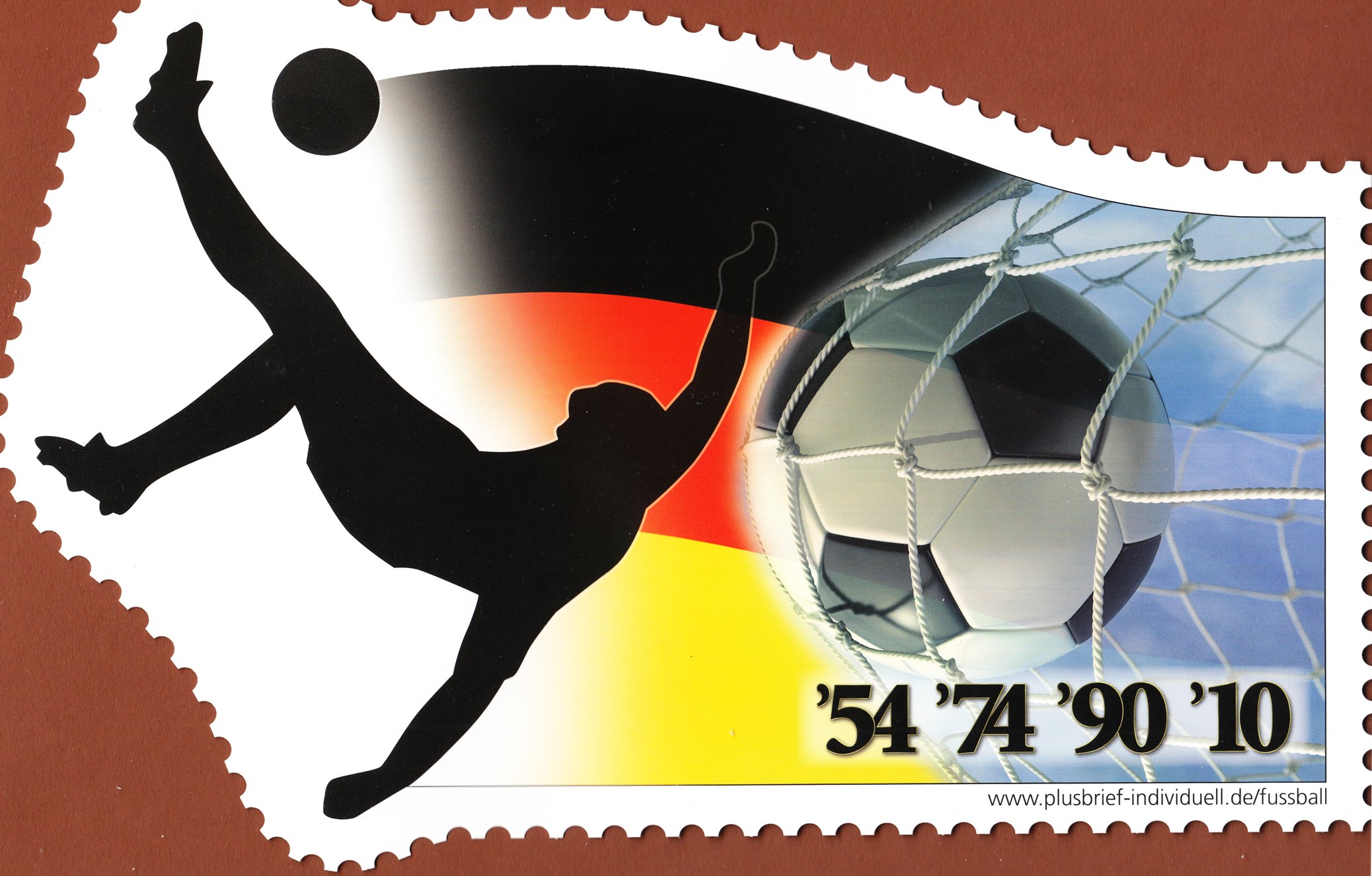 An diese WM erinnert diese in Form und Größe recht ausgefallene Pluskarte individuell, die mit 43 Cent als Infopost lief: