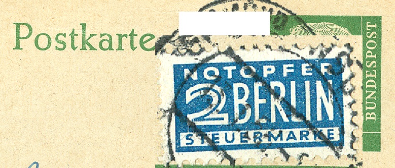 Alle Postsendungen (Drucksachen, Postkarten, Briefe, Päckchen und Pakete) mussten in der amerikanisch-britischen Zone ab 01.12.1948 zusätzlich mit einer Zwangszuschlagsmarke "NOTOPFER BERLIN" versehen sein.