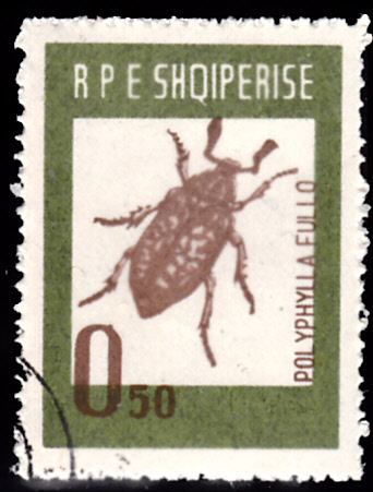 Auch in Albanien ist eine Marke (MiNr 735) mit einem Walker (Polyphylla fullo) erschienen.