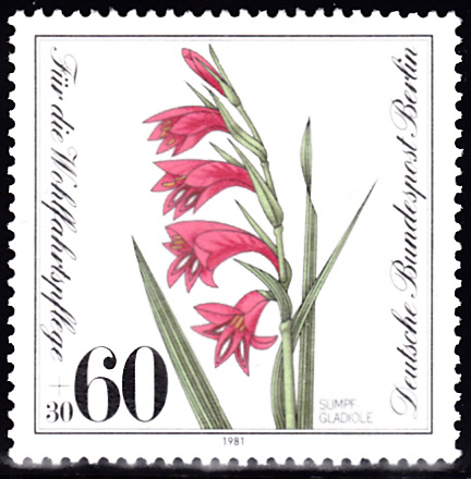 Auf einer Marke aus Berlin (MiNr 652) ist eine Sumpf-Siegwurz oder Sumpf-Gladiole (Gladiolus palustris) abgebildet.