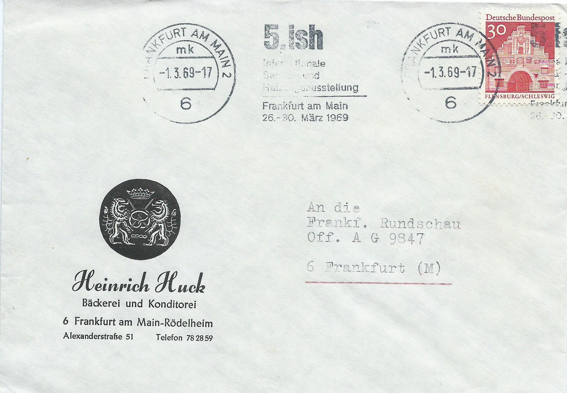 Frankfurt am Main 2 wirbt am 1.3.69 für die 5. ish, die Internationale Sanitär- und Heizungsmesse 1969: