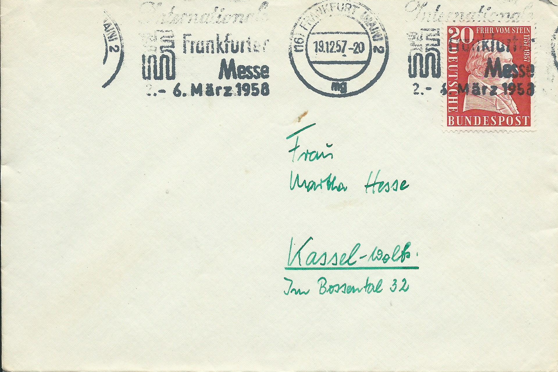 Für die Internationale Frankfurter Messe 1958 wirbt Frankfurt am Main 2 am 28.10.57:
