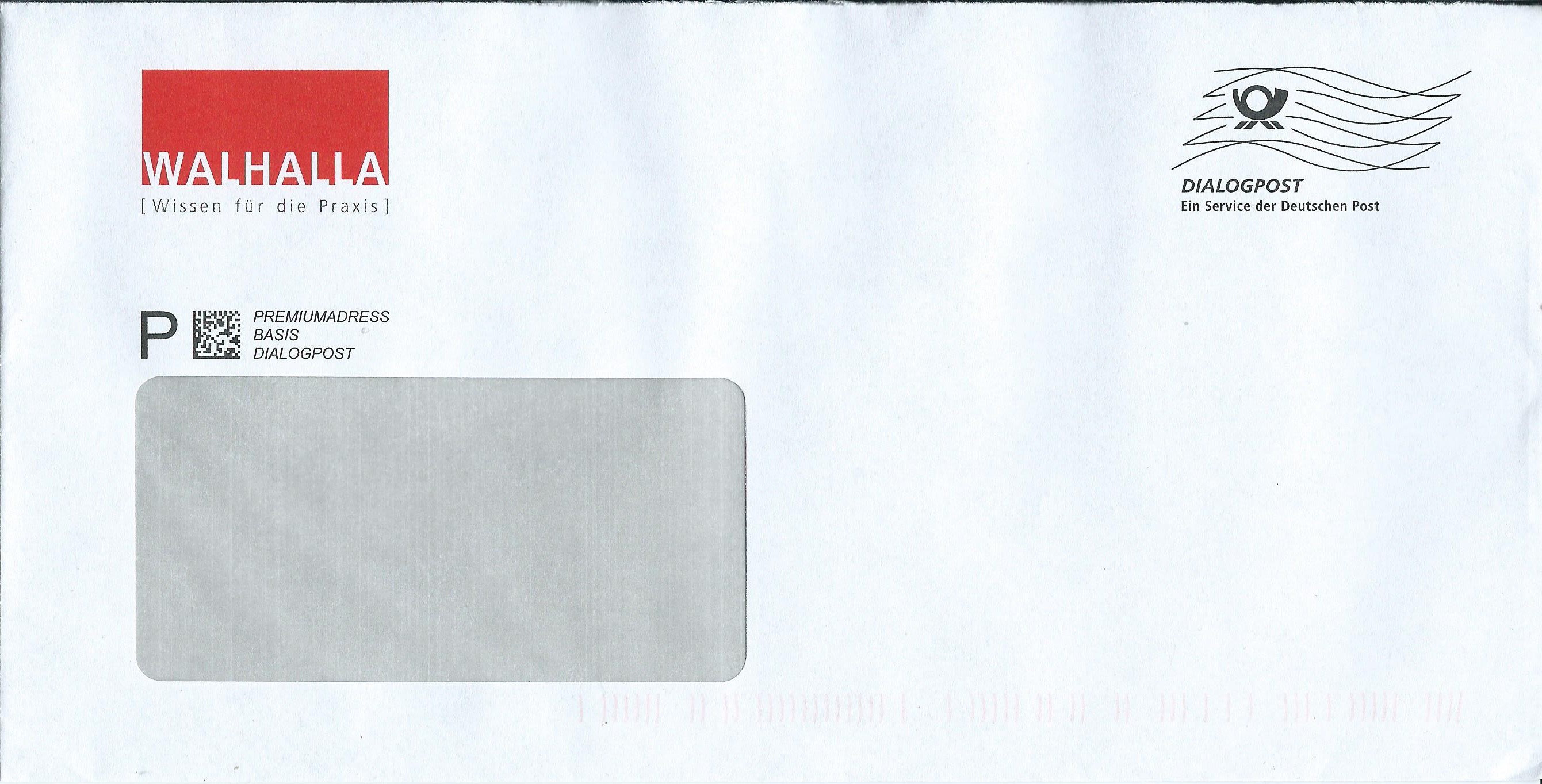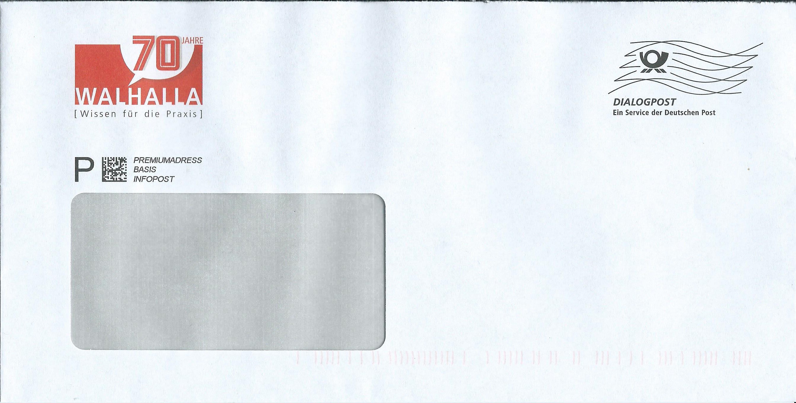 zum Thema Dialogpost haben mich meine Kollegen aus der Poststelle wieder mit 3 neuen Belegen versorgen können. Der erste stammt von der Firma Walhalla und hat nur die Frankierwelle.