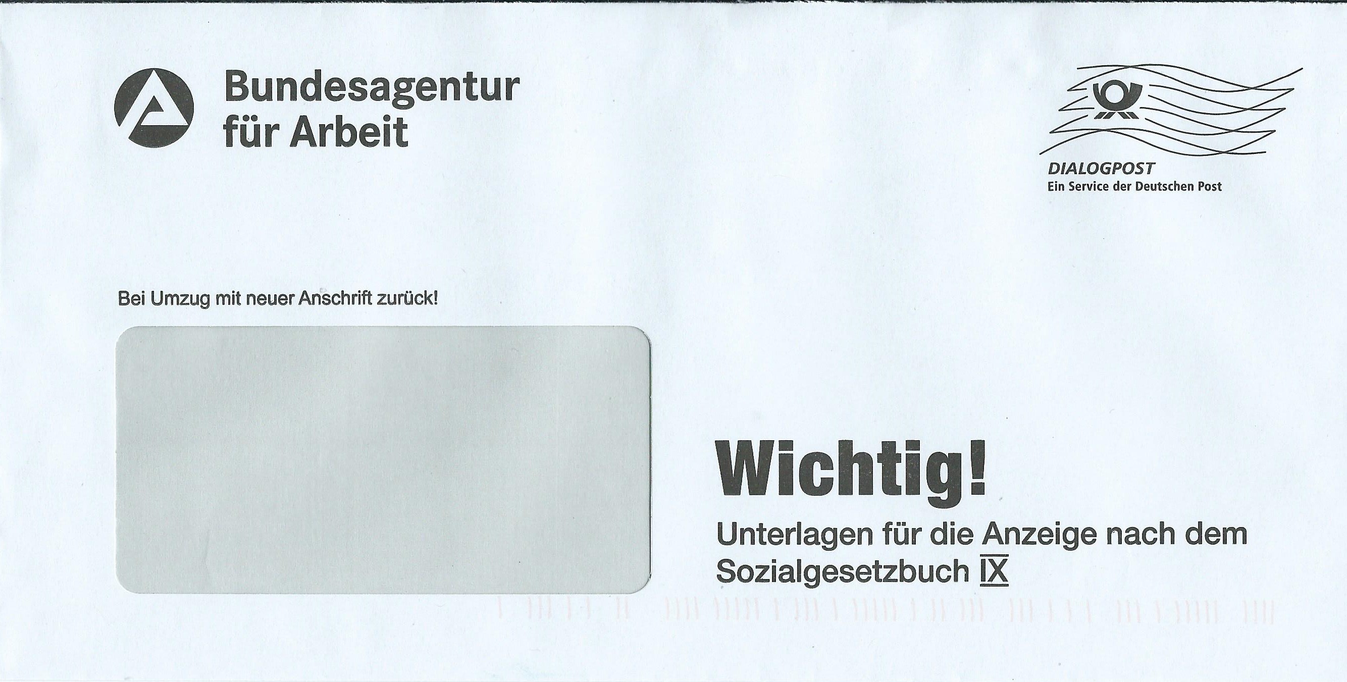 Und einmal von der Bundesagentur für Arbeit, ebenfalls nur mit der Frankierwelle ohne markenähnlichem Zudruck: