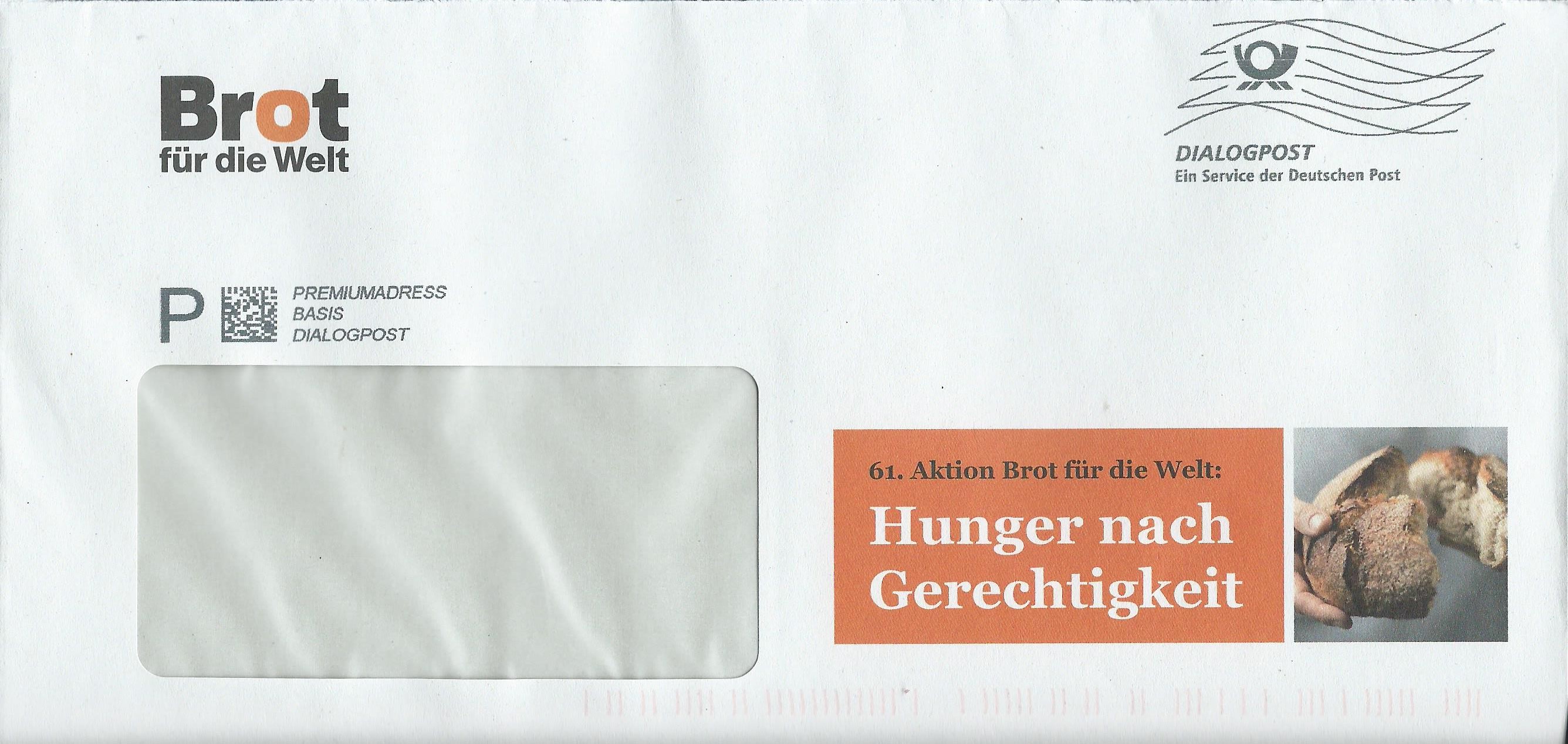 Und der dritte kommt von Brot für die Welt, auch wieder nur mit Frankierwelle ohne markenähnlichen Zudruck: