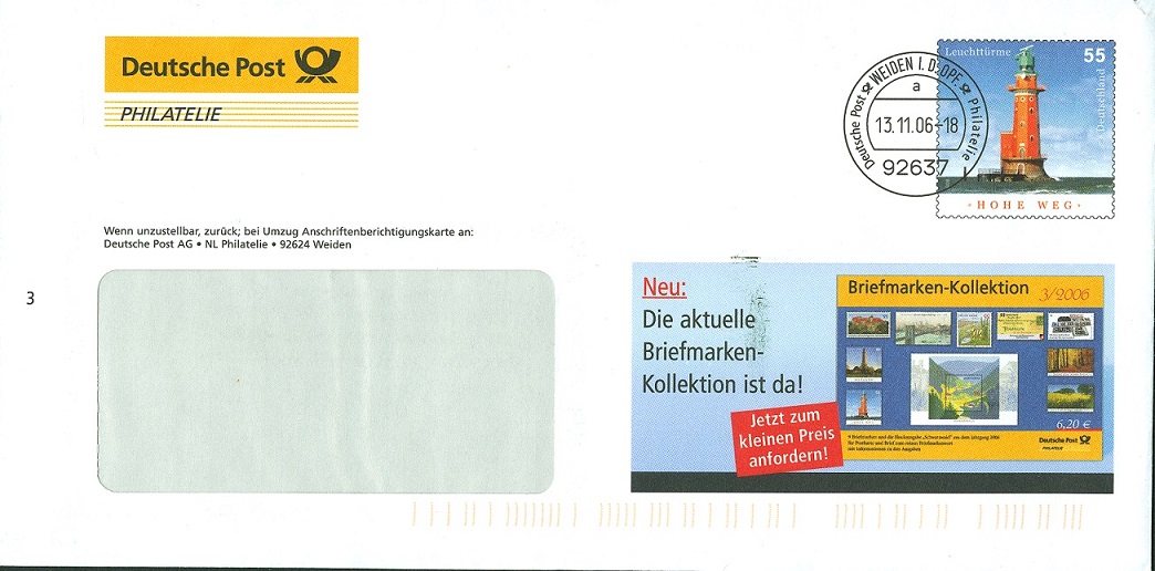 Mit der Mehrfachverwendung des Motivs "HOHE WEG" (MiNr. 2556), der inzwischen zur Serie angewachsenen Leuchttürme-Ausgaben, haben sicher die Motiv-Sammler der deutschen Leuchttürme ihre Freude.