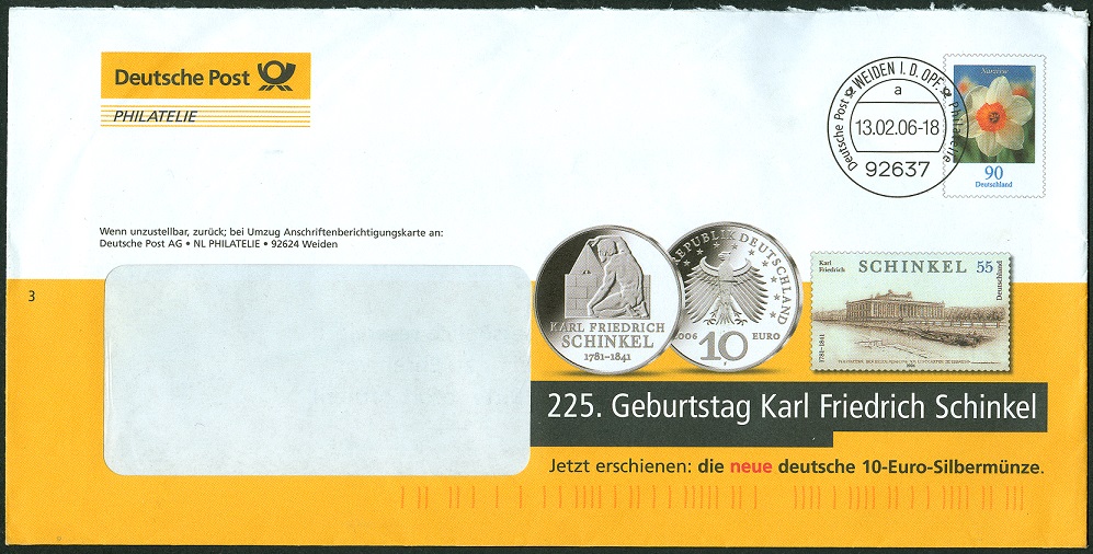 Der Wertstempel (90 Cent) wurde mit dem Vorausentwertungsstempel "13.02.06 - 18" bedruckt.