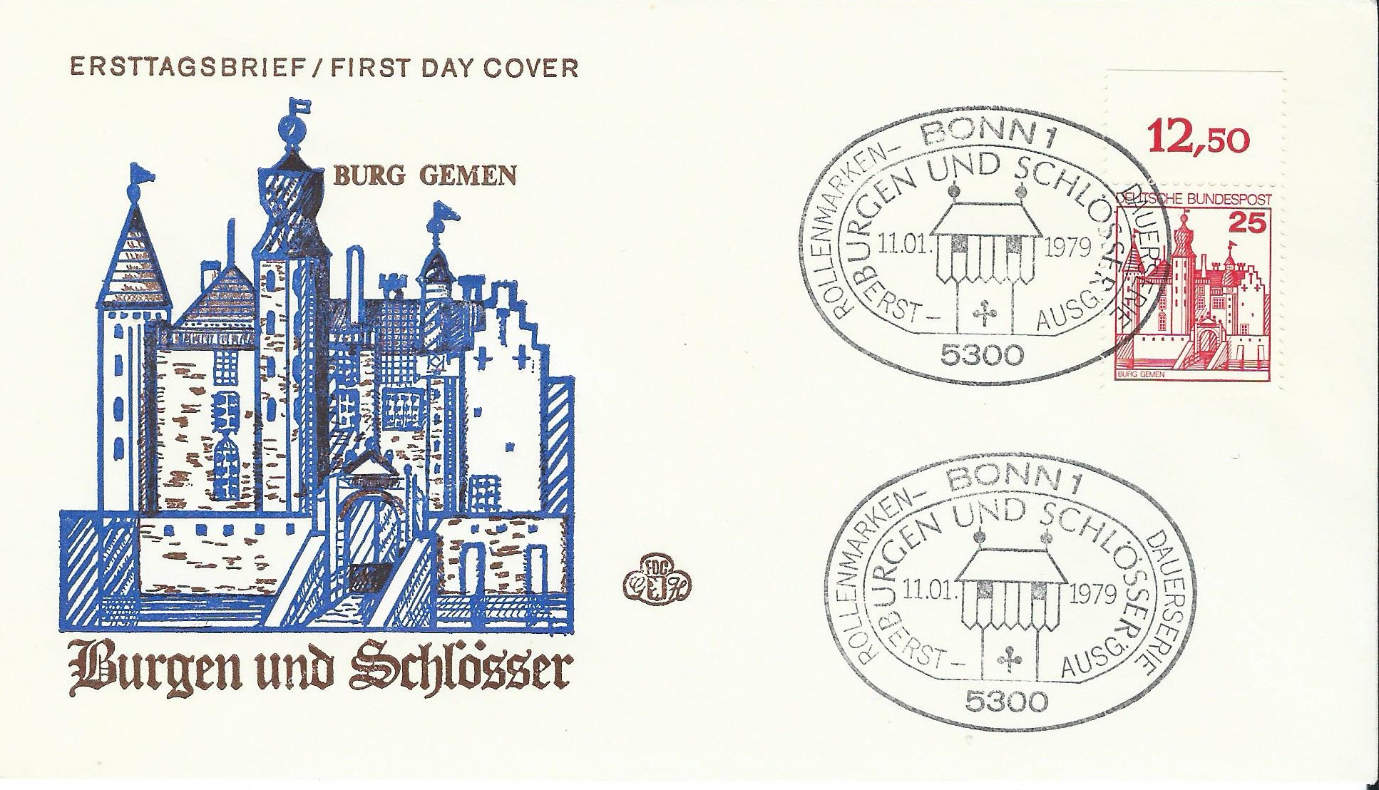 die Serie Burgen und Schlösser habe ich einmal komplett als Ersttagsbrief erhalten können. Nun ist es ja leider mittlerweile so, dass einem „normale“ Ersttagsbriefe „hinterher geworfen“ werden. Meine hingegen haben alle Marken vom Oberrand und so etwas muss auch erst einmal gefunden werden.