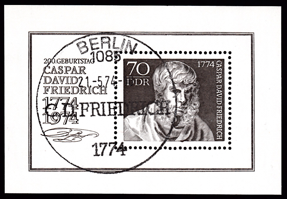 In der DDR erschien zum 200. Geburtstag von Caspar David Friedrich in einer Serie auch diese Marke (MiNr 1958) mit seinem Gemälde "Zwei Männer in Betrachtung des Mondes".