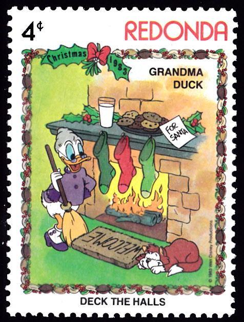 Auf Redonda (Redonda liegt etwa 55 km westlich von Antigua und gehört zu Antigua und Barbuda) ist zu Weihnachten 1983 eine Serie mit Darstellungen zum englischen Weihnachtslied "Deck the Halls" durch Walt-Disney-Figuren.